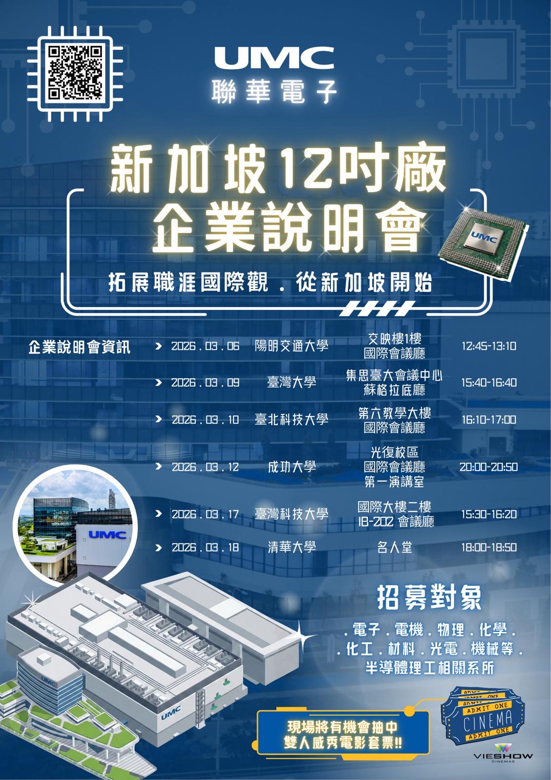 【2026 UMC 聯華電子 校園徵才活動開跑】